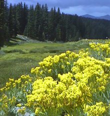 平和を好んだというネイティブアメリカン、プエブロ族に思いを馳せながら、レースは東へと進行する。レース全体で登り勾配が最もきつくなる処。高低差も大きく、最高地点は1万フィートを越える。高山植物の自生する路肩が黄色い花で彩られていた。(写真左下・DC-2)