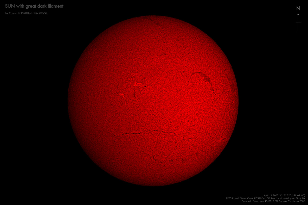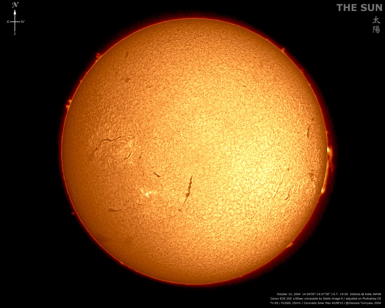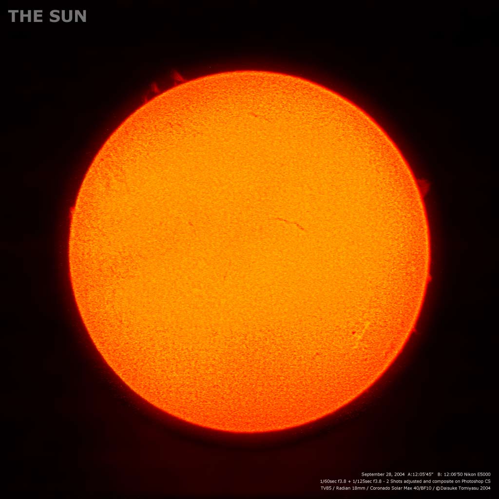 I did not took sun photo so long because thinking several way to get different image but could not get goods yet. One of the reason is EOS1DsMk2. However, for the sun, H-Alpha is very important and 20Da is the best.